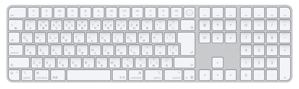 「 Apple シリコン搭載 Mac モデル用 Touch ID 搭載 Magic Keyboard (テンキー付き、 USB – C ) - 日本語 - ホワイトキー」こいつを急遽購入しました。今は有線のアップルキーボードを使っています。 Touch ID がないタイプなので面倒くさい。